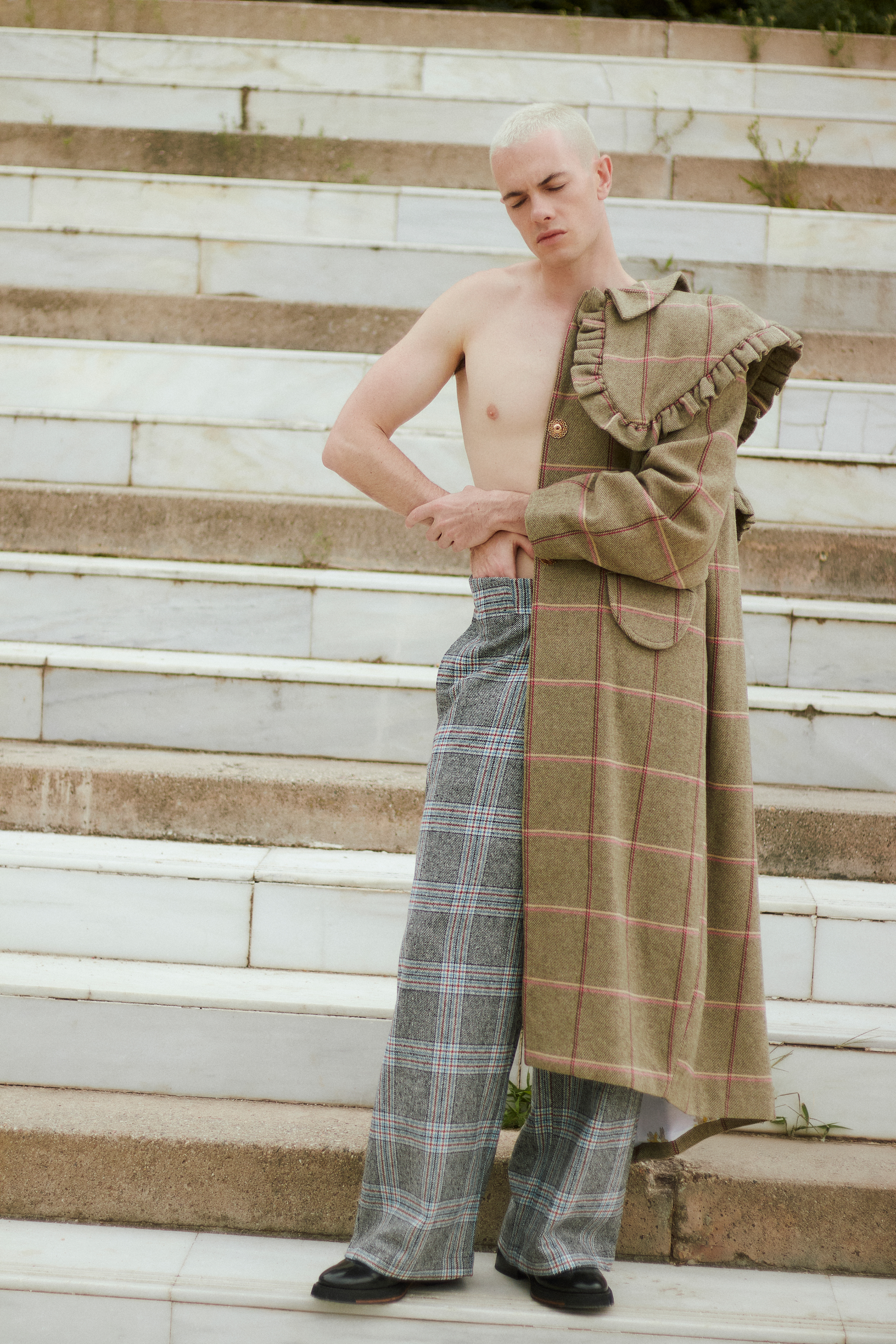 Coat — CLARA PARDO MUÑOZ, Pants — HARRY LAMBERT FOR ZARA, Shoes — PABLO ERROZ.