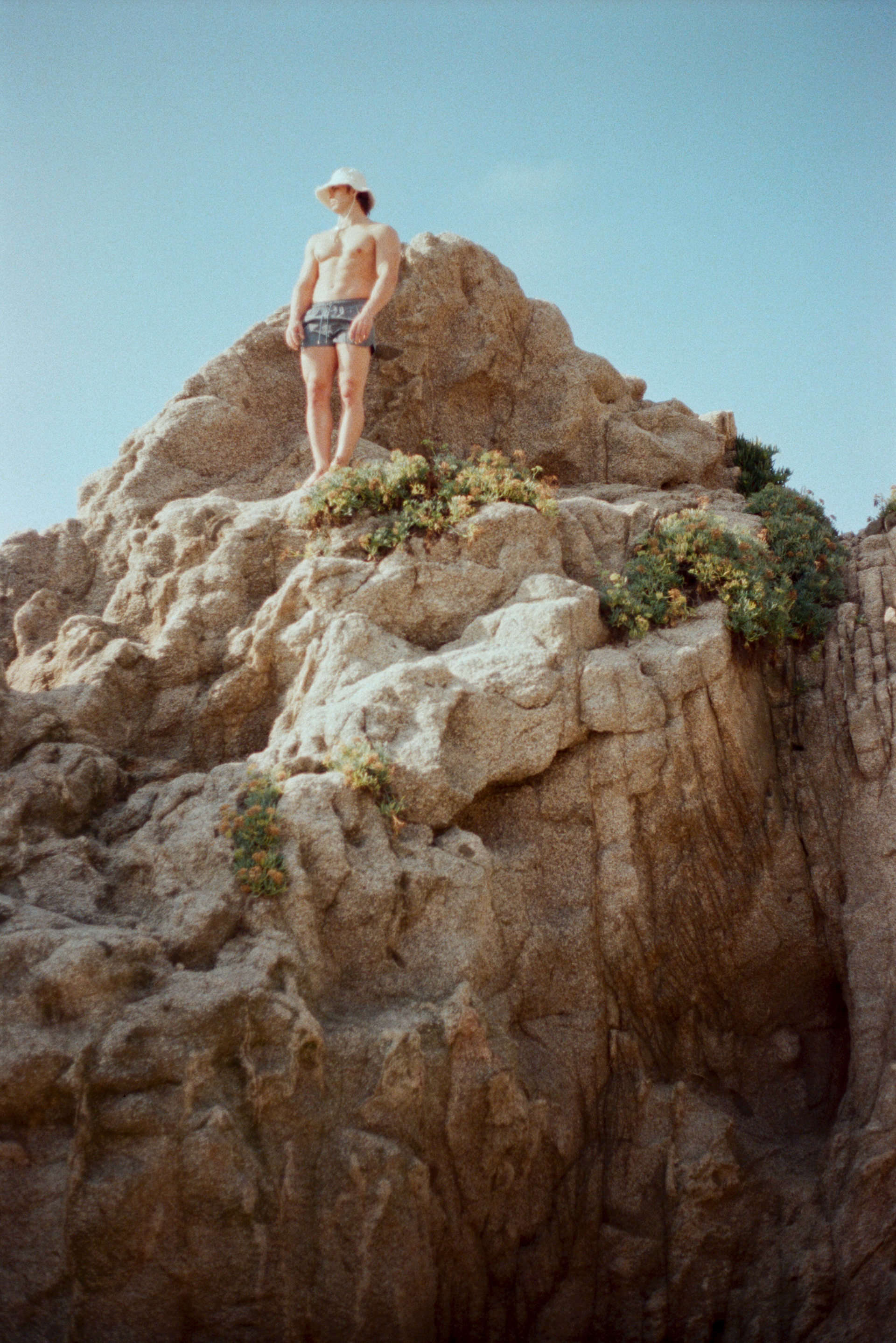 bucket hat — JACQUEMUS, swimwear — CALVIN KLEIN.